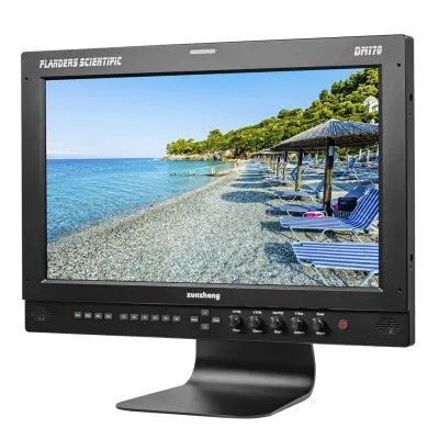 The Flanders DM170 features full 12bit video processing and a 16.5” 10bit LCD panel capable of reproducing over 1.073 billion colors on screen. Its specialized toolset is incredibly well suited for dynamic on set color management applications as well as the most demanding post production environments. This unit is equipped with 3G/Dual-Link/HD/SD-SDI, DVI-D, and Display Port Inputs. Like our CM series monitors the DM170 offers support for virtually any signal format including advanced 12bit, 4:4:4, and XYZ signal formats. What sets the DM170 apart are its 3rd generation Color Fidelity Engine (CFE3), dedicated 2nd screen outputs, Image Flip, Display Port to SDI cross conversion, and zero-delay processing mode